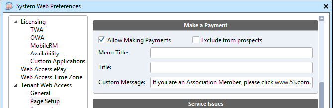 Restrict an individual tenant from making Tenant Web Access payments