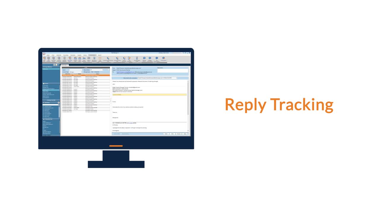 When emails are sent from Rent Manager, you can now automatically track replies in your Email Center. This ensures the entire conversation thread is documented in the program.