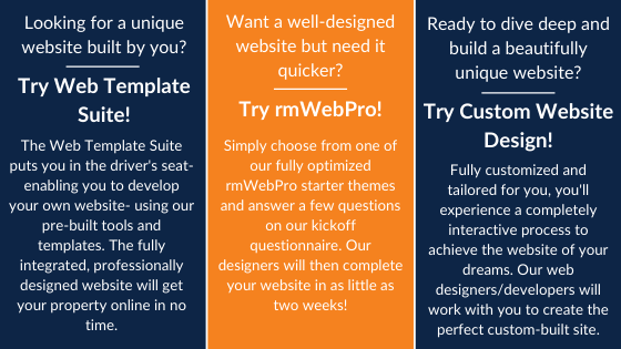 Taking the first step in brainstorming ideas for your website and then building it may seem overwhelming. Maybe you want your site to be purely informative, or you’d like your tenants and prospects to be able to interact more with you online. Whatever your goals, rmWebPro—our newest website-building option—will deliver the professionally designed and developed site you want within the timeline you need.