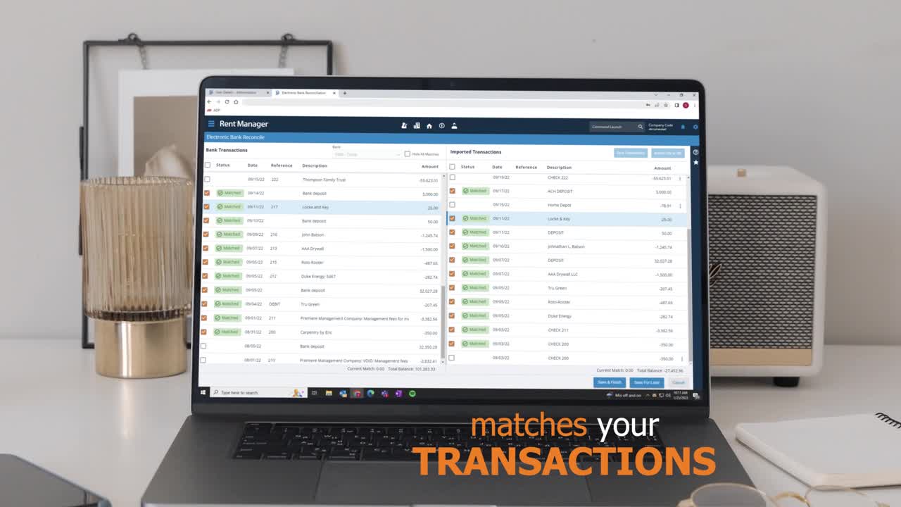 Use Bank Sync to securely connect your bank and credit card accounts to Rent Manager Express. Once synchronized, your real-world bank and credit card transactions will appear in the software for simple reconciliation.